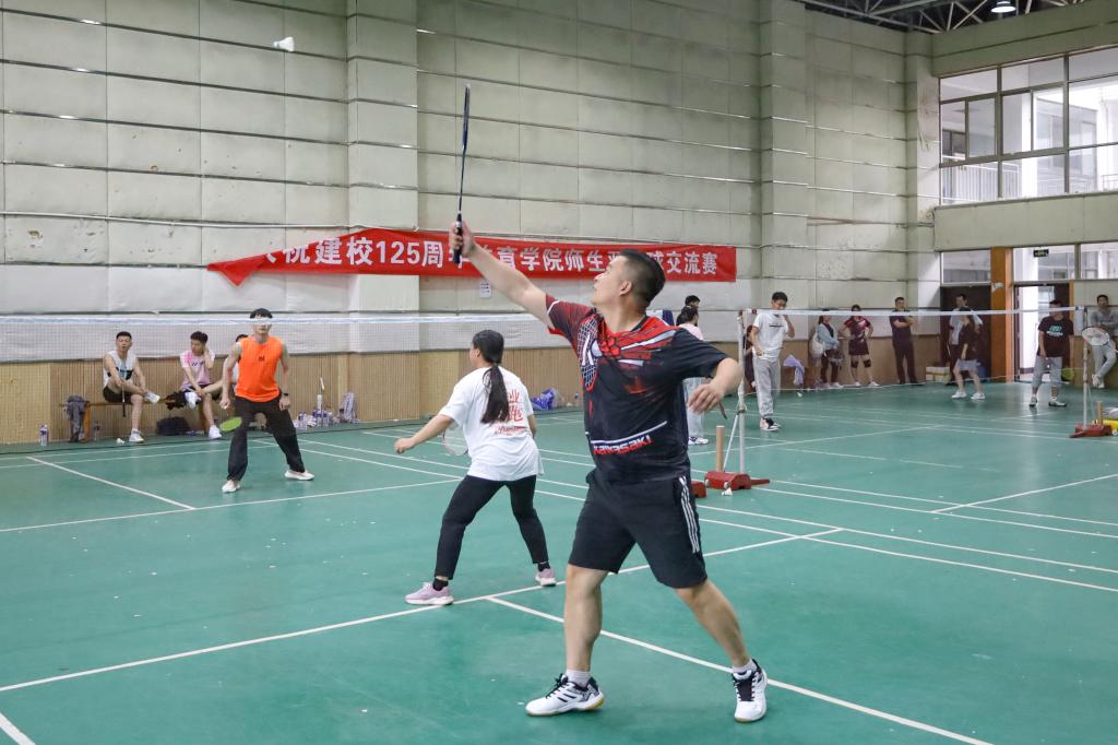 在羽毛球馆举办了庆祝办学125周年师生羽毛球交流赛,40余名教工与研究生积极参与了此次比赛。
