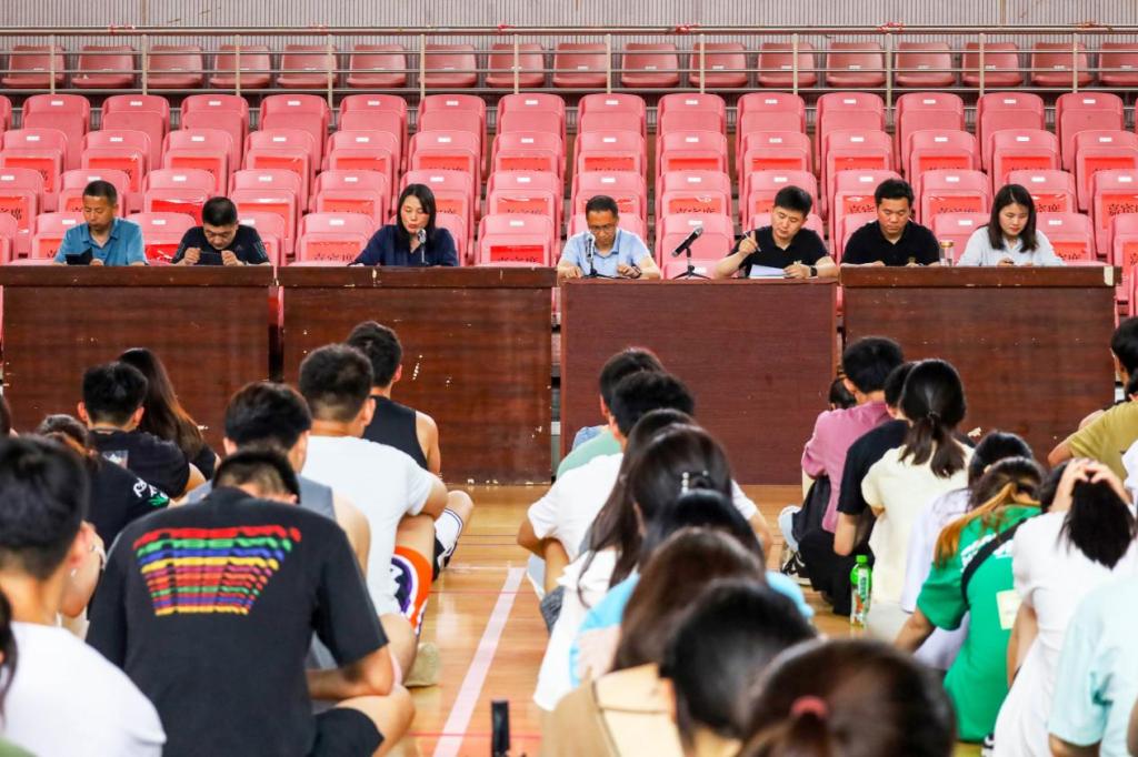 在体育馆篮球馆召开2021-2022学年第二学期期末学生安全纪律教育大会。香蕉视频
