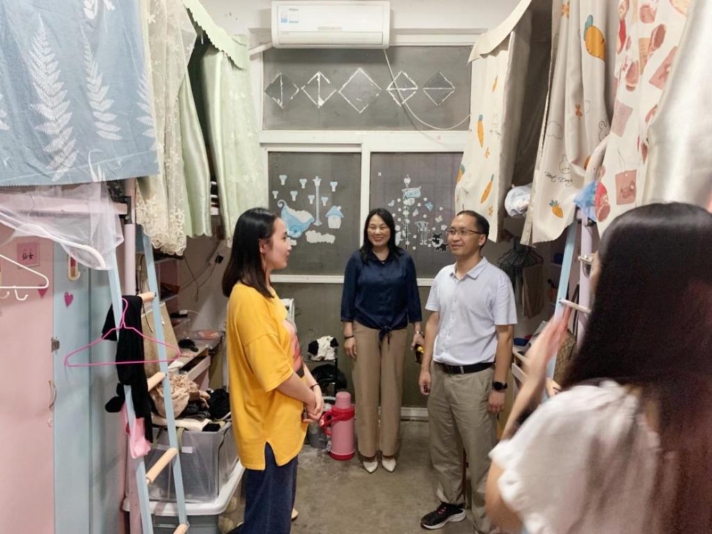 在寝室走访期间,各位老师亲切询问了同学们最近的生活、就业安排情况,了解同学们离校行程安排、手续办理等问题,耐心地解答了同学们的疑惑,叮嘱同学们要在离校过程中,严守疫情防控红线,提高安全意识,做好安全防护工作。同时也对毕业生表达了衷心的祝愿,期望大家在未来的工作、生活中牢记母校和师长的嘱托,传承和发扬“敬敷世范、勤学笃行”校训精神;勉励毕业生们要用心工作,以实际行动为母校添光增彩。