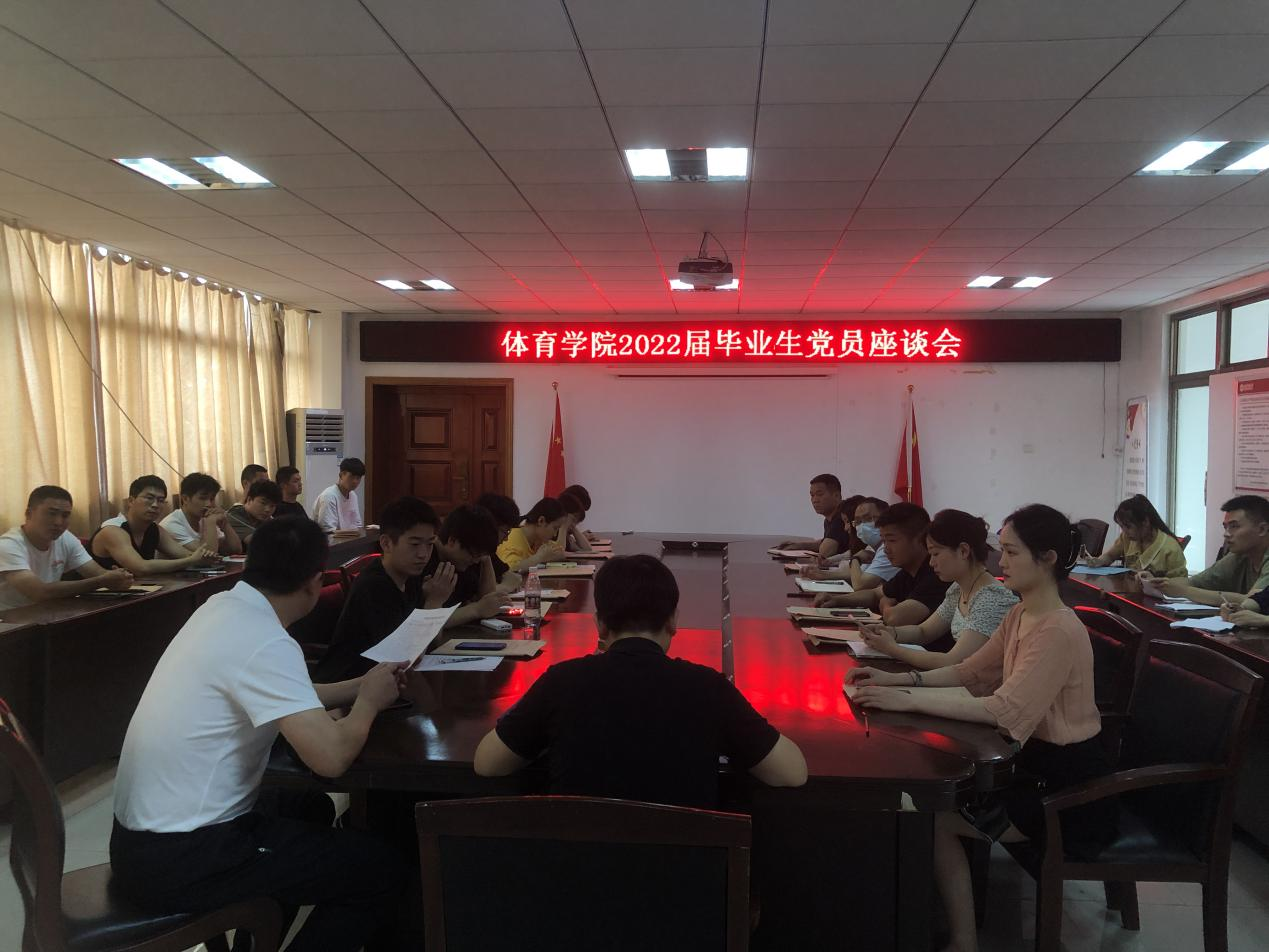 在体育馆三楼会议室召开2022届毕业生党员座谈会。学院党委副书记高栋梁、党委秘书邓龙、各学生支部书记出席会议,全体毕业生党员参加会议。