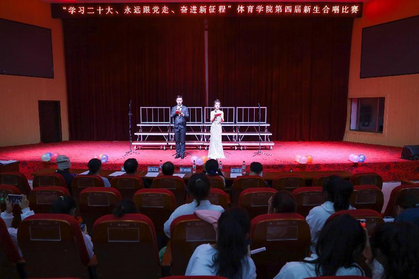 于龙山校区图书馆东报告厅举行“学习二十大、永远跟党走、奋进新征程”第四届新生合唱比赛。学院党委副书记王玮、团委负责人、新生辅导员老师出席,全体学生会成员以及2022级新生参加了此次活动。