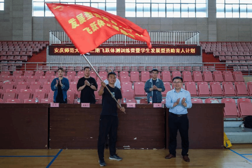 方瑞为第二期发展型资助计划——体质提升工程“飞跃体测训练营”授旗。王玮在仪式上向学校对香蕉视频