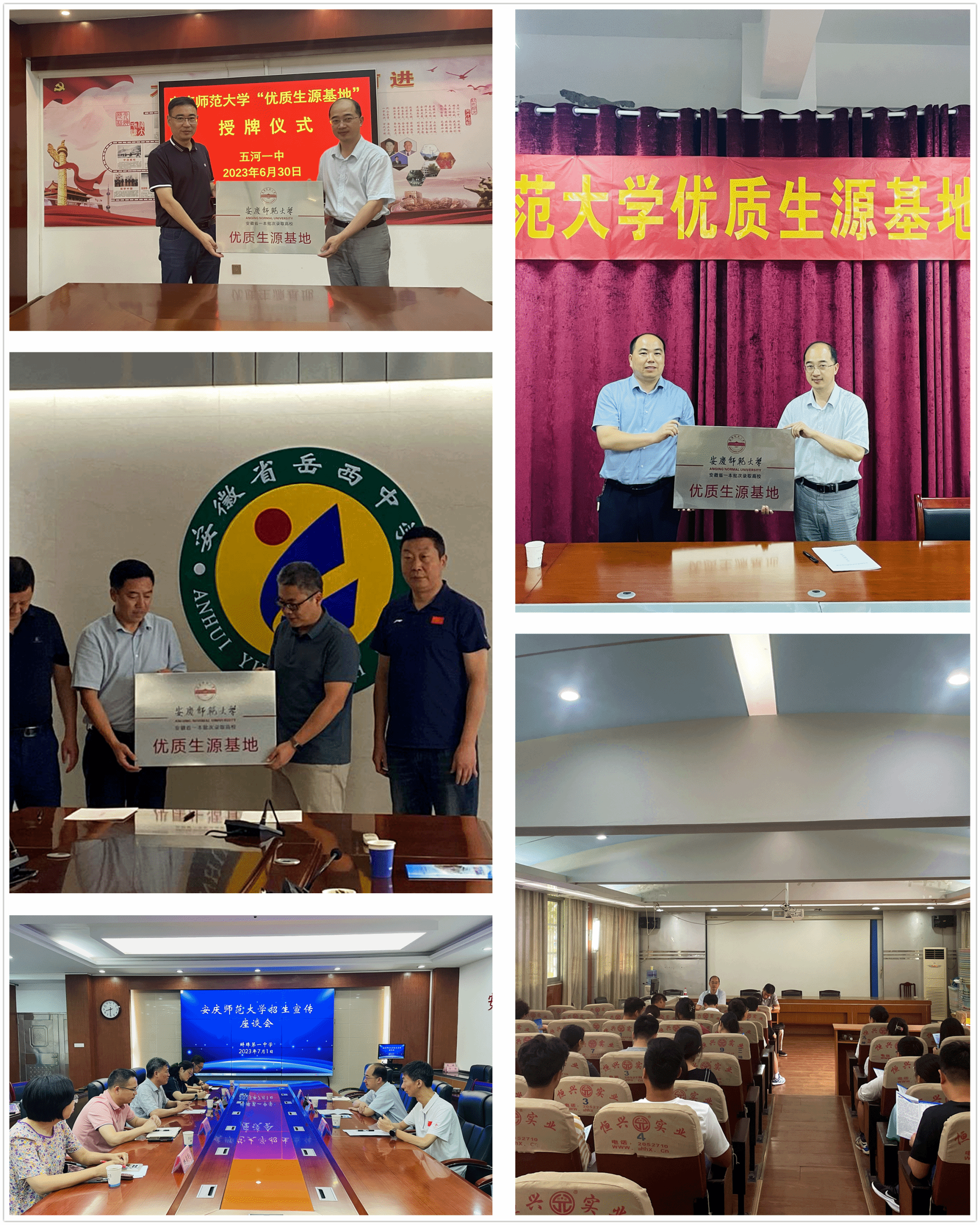招生宣传组一行分别与五河第一中学、固镇县毛钽厂实验中学、安徽岳西中学签订优质生源基地的合作协议并授牌,回访了安徽省蚌埠第一中学。学院相关负责人分别向4所中学详细介绍了学校办学历史、办学条件、学科建设、专业特色、人才培养等基本情况,解读了今年的招生政策,尤其是介绍了香蕉视频
