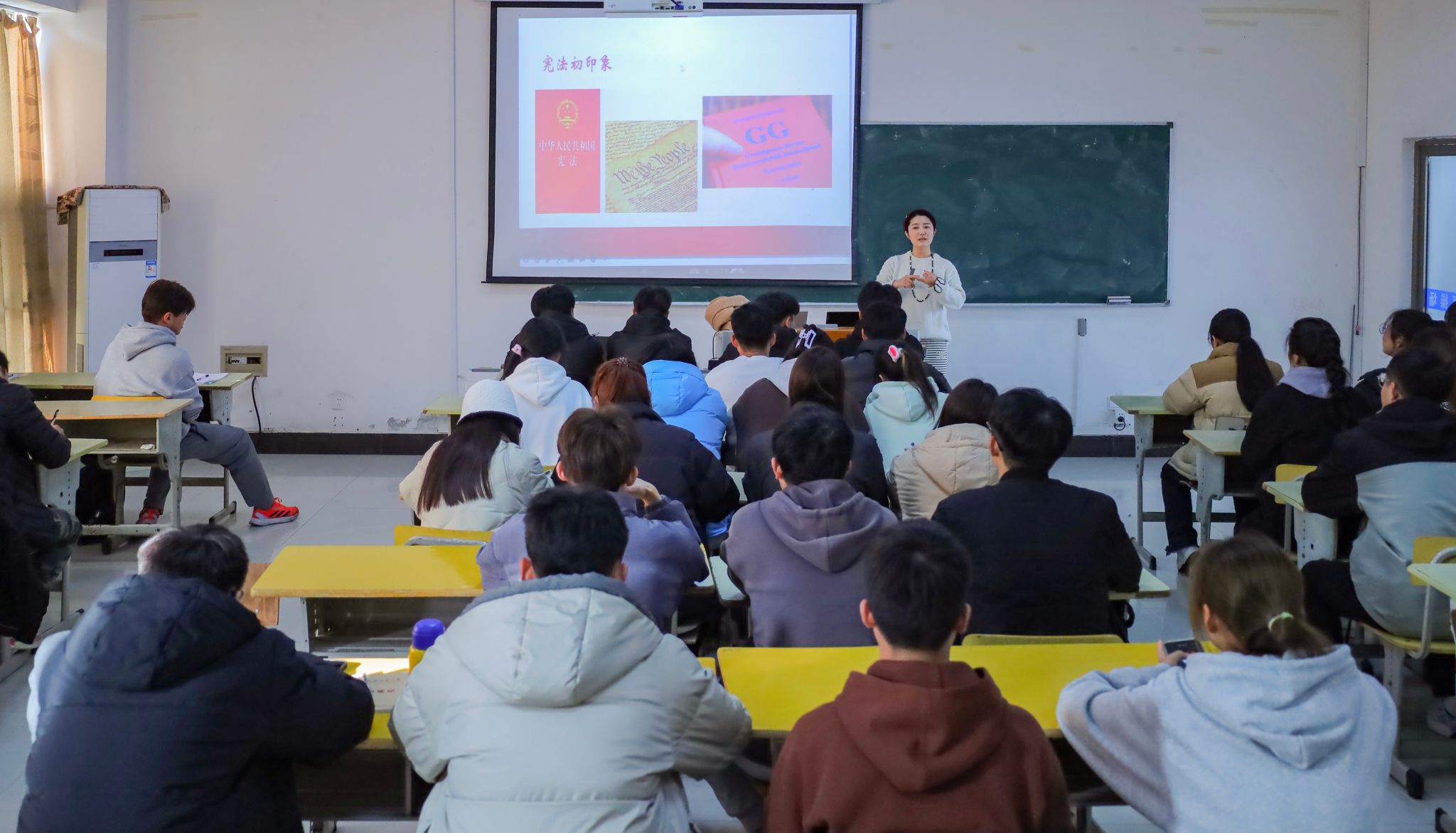 谈及“中华人民共和国宪法的产生与发展”这一专题时,王欣教授接连抛出的问句让学院学子在“互动式”讲解中深刻体悟宪法的发展历程。在对“2007年重庆‘史上最牛钉子户’”等实际案例的分析中,王欣教授用风趣的语言将晦涩的法律条文转化为通俗易懂的内容,并以校园生活中的点滴小事为切入点,向学生们分享“慧眼识陷阱”的技巧。