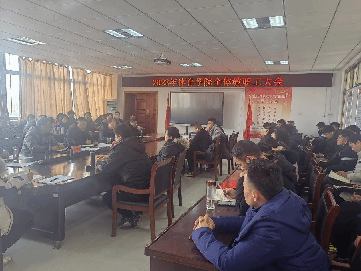 在体育馆三楼会议室召开全体教职工大会,学习宣传贯彻习近平总书记重要讲话指示精神,部署学院近期重点工作。会议由周多奇院长主持,学院党政班子、全体教职工共同参加。