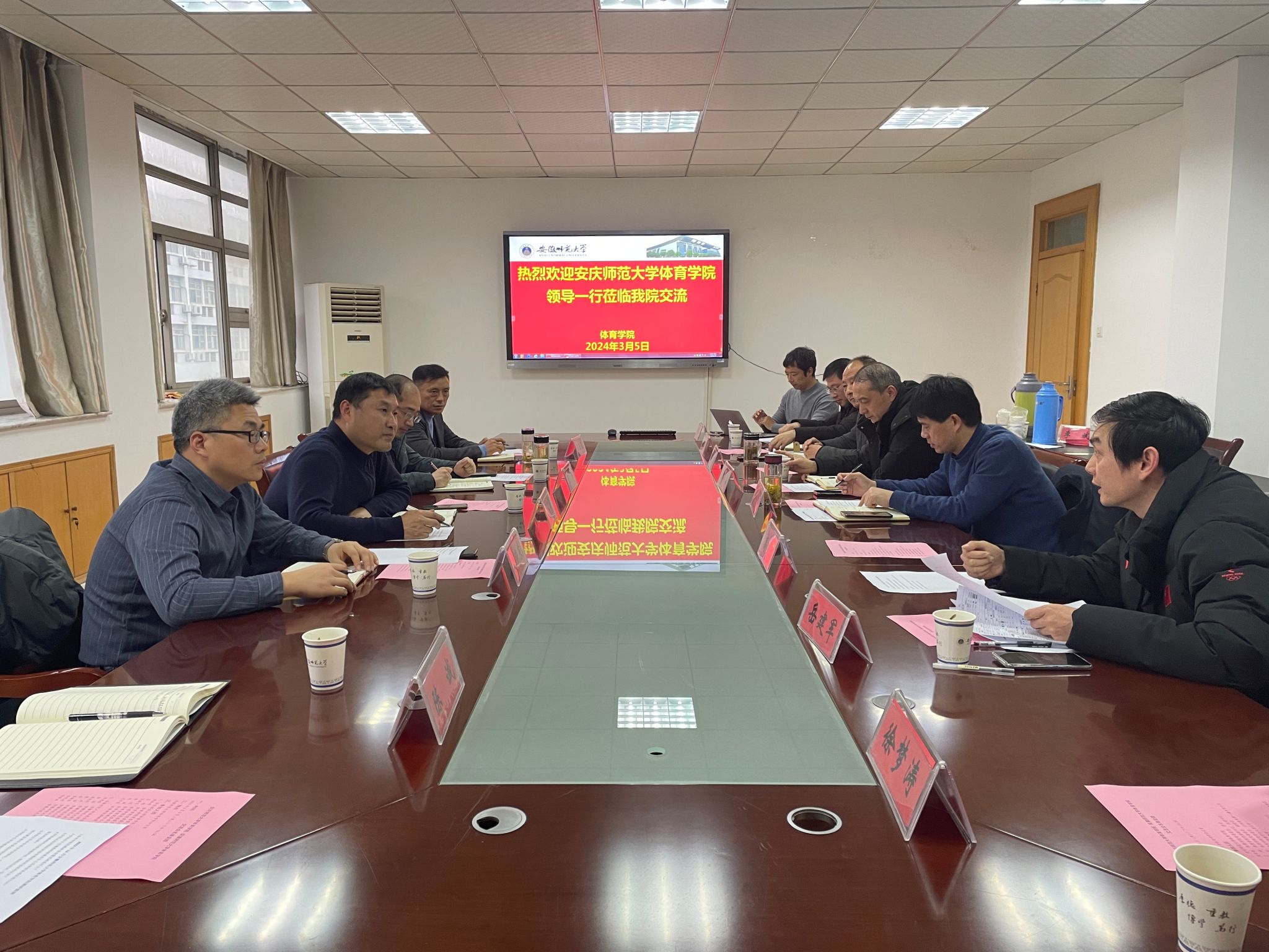 党委书记黄德春、院长金涛及学院领导班子成员对我院调研来访表示欢迎。黄德春就学院的党建基本情况、学校体育文化建设作了详细介绍。金涛介绍了安徽师范大学香蕉视频