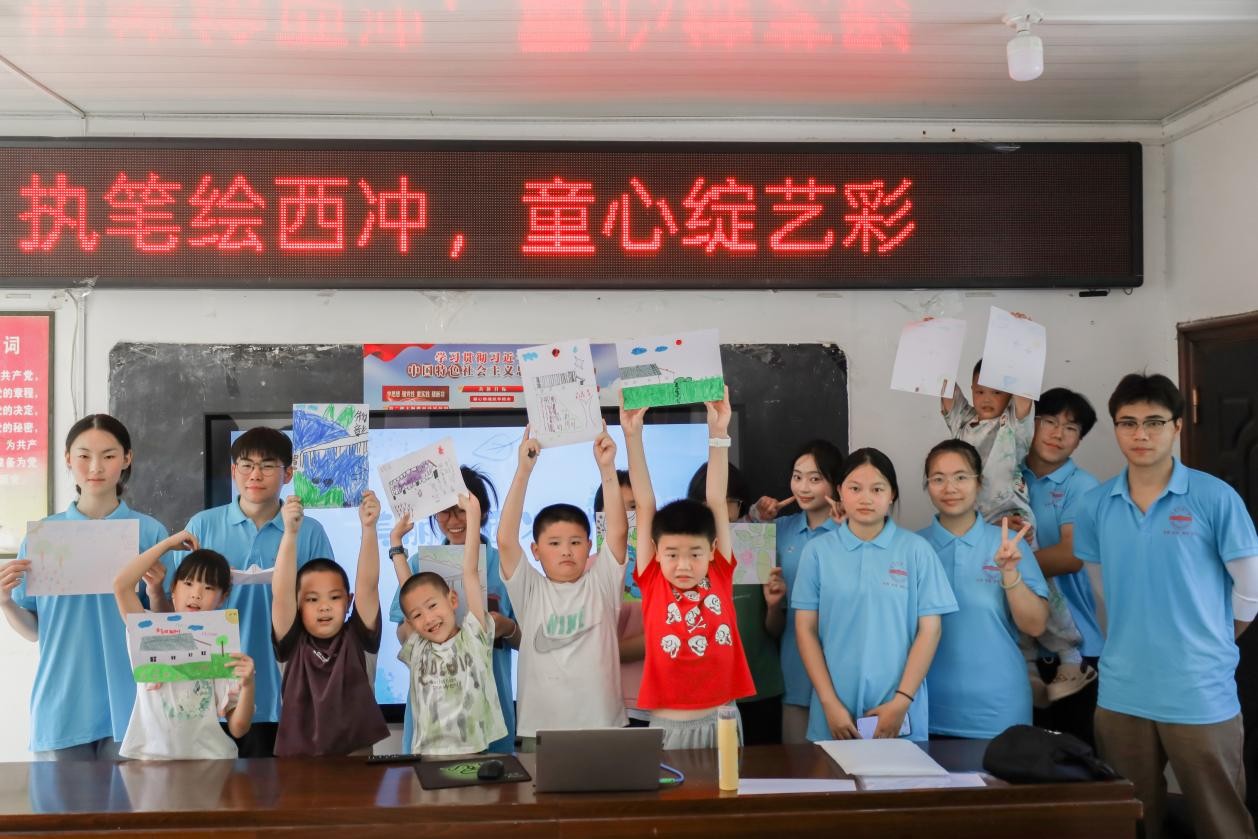 “舞动青春·志愿家乡”实践团队走进天华镇西冲村,将绘画课堂与防溺水安全教育融合,以趣味形式为乡村孩子筑牢安全防线,赋能乡村教育。