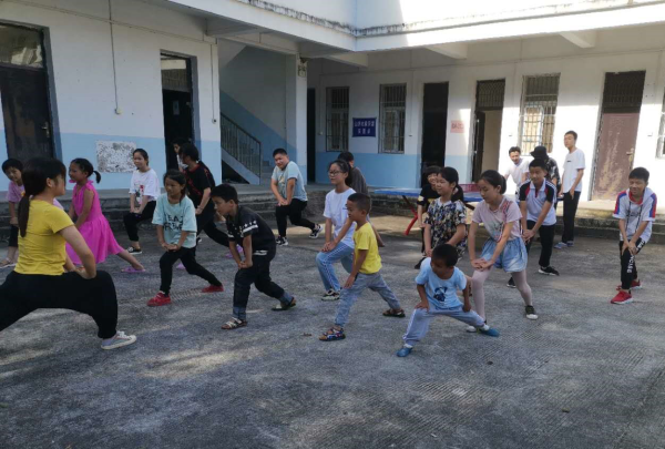 体育表演专业2019(1)班的刘会茹细数着来到安庆市太湖县西冲村支教两周多的经历,她笑道,“我们白天是课堂上的‘小老师’,晚上是村里的‘广场舞教练’。”