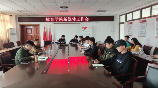 在体育馆会议室召开学院新媒体工作会议。学院党委副书记高栋梁、团委工作负责老师和各班级负责新媒体运营的同学参加会议。