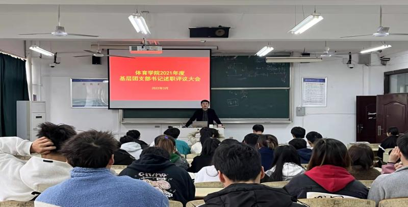 在B301教室召开2021年度基层团支部书记述职评议考核会议。