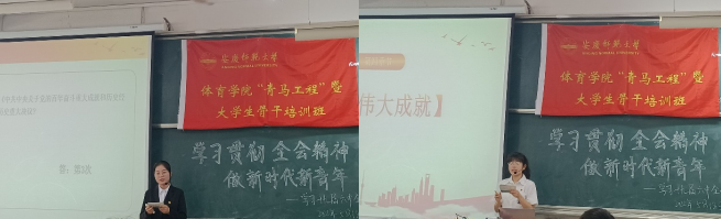 特邀校“青年新声”宣讲团为学院第三期“青马”班学员开展党的十九届六中全会的精神宣讲。校“青年新生”宣讲团成员孙荣、程静应邀做了宣讲。