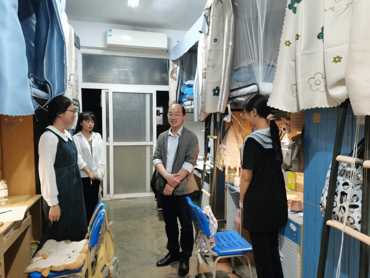 党委副书记王玮,带领全体专兼职辅导员、学生会干部一起,深入学生寝室,进行学生住宿安全教育与拉网式排查整治。此次排查重点在于公寓内是否存在违规使用大功率电器、私自在外住宿等违纪现象,并对学生寝室卫生与文化建设进行教育。