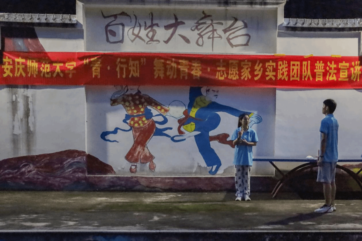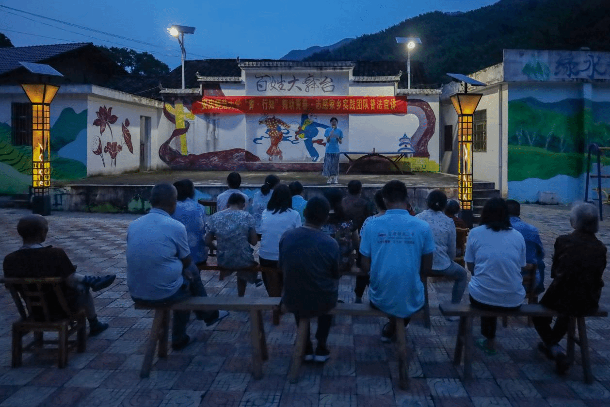 “舞动青春,志愿家乡”暑期三下乡实践团成员们为村民带来的一堂别开生面的普法课堂。