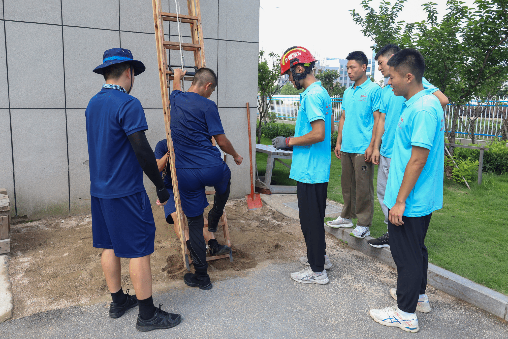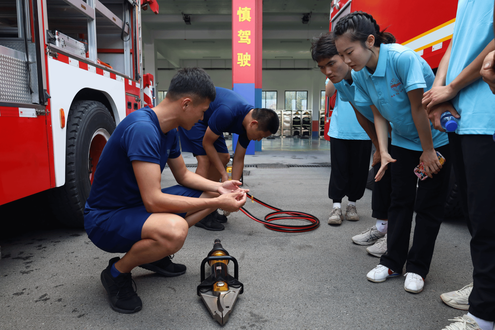 竖梯、调整、验稳、爬升,参观完毕后,消防员向大家介绍了一些常见消防设备的使用方法,之后,成员们在消防员的指导下进行训练。“观看示范觉得很简单,但自己操作时发现还是有难度的。”训练时,退伍学生、体育教育专业2021级的王顺发现昔日战友从解放军变身“逆行者”。“我并不知道他在这里工作。”王顺表示,消防员训练时的拼搏和努力让他想起了自己的军旅生活,“通过今天的体验,让我对消防员这个光荣的职业很向往。”他说。