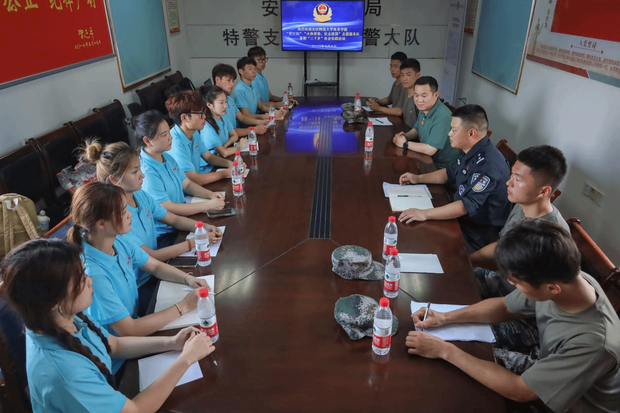 “舞动青春,志愿家乡”乡村振兴暑期社会实践团代表及“火热青春,壮志报国”暑期社会实践团共13人赴安庆市公安局特警支队菱北特警大队开展暑期实践活动。座谈会于菱北特警大队党员活动室举行,香蕉视频
