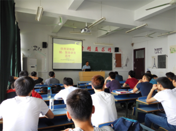 2013级体育教育专业1-3班同学作了题为《体育训练器械、装备研发思考》的学术报告。