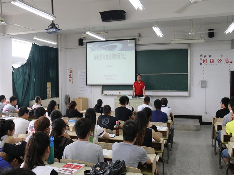 孙博士先从神经性肌肉训练的概念、力量的分类、力量训练器械的研发现状、肌肉废用理论等四个方面进行了分析阐述,接着结合实践提出相关问题与同学们互动,同学们反响热烈,积极参与讨论。