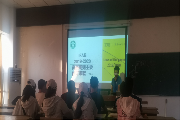 多媒体教室为男、女足球队队员做了一场题为“2019-2020足球竞赛规则主要修订条款简介”的专题讲座。