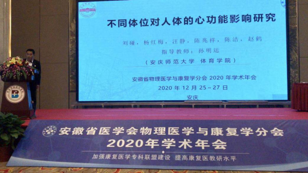 12月25-27日,安徽省医学会物理医学与康复学分会2020年学术年会在安庆市南翔大酒店开幕。学院运动康复教研室主任孙明运博士、运动康复实验实训中心主任钱振宇副教授、校医院高云医师和王晓晓老师带领2018级运动康复专业本科生及部分研究生参加了本次会议。