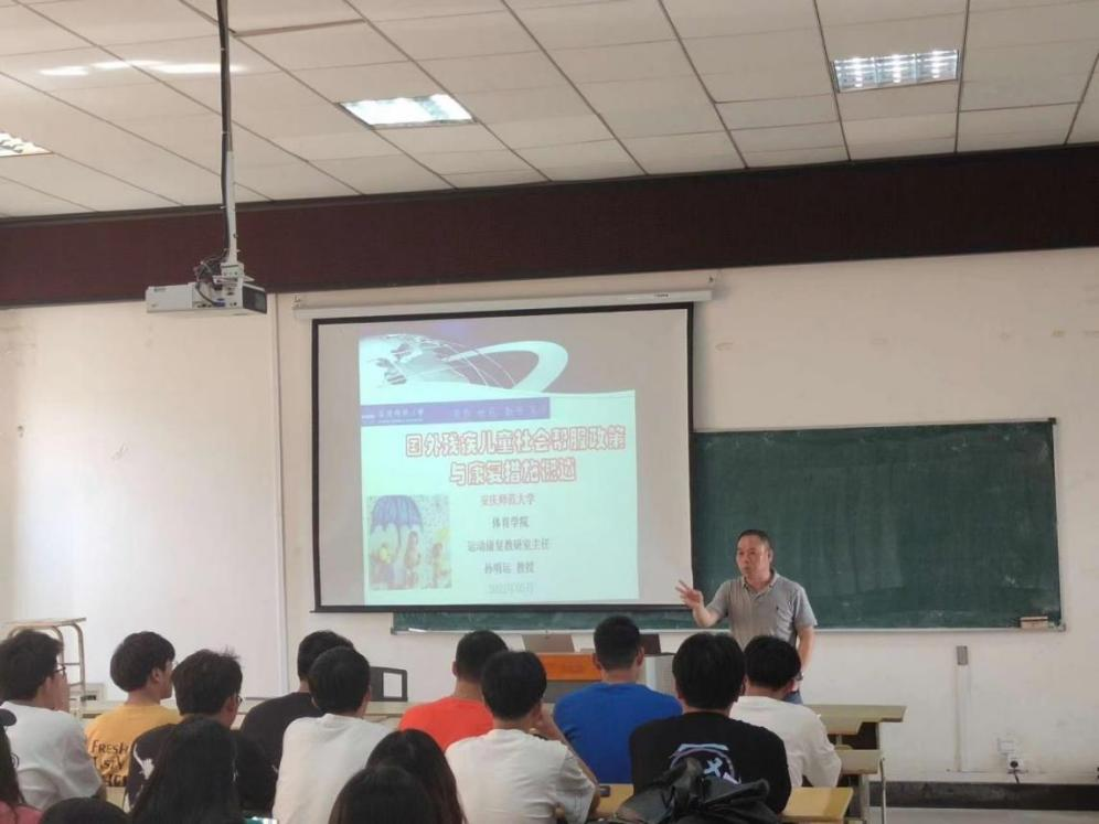 运动康复教研室主任孙明运博士、教授为2021级运动康复专业本科生及部分研究生作了题为“国外残疾儿童社会帮服政策与康复措施概述”的学术报告。