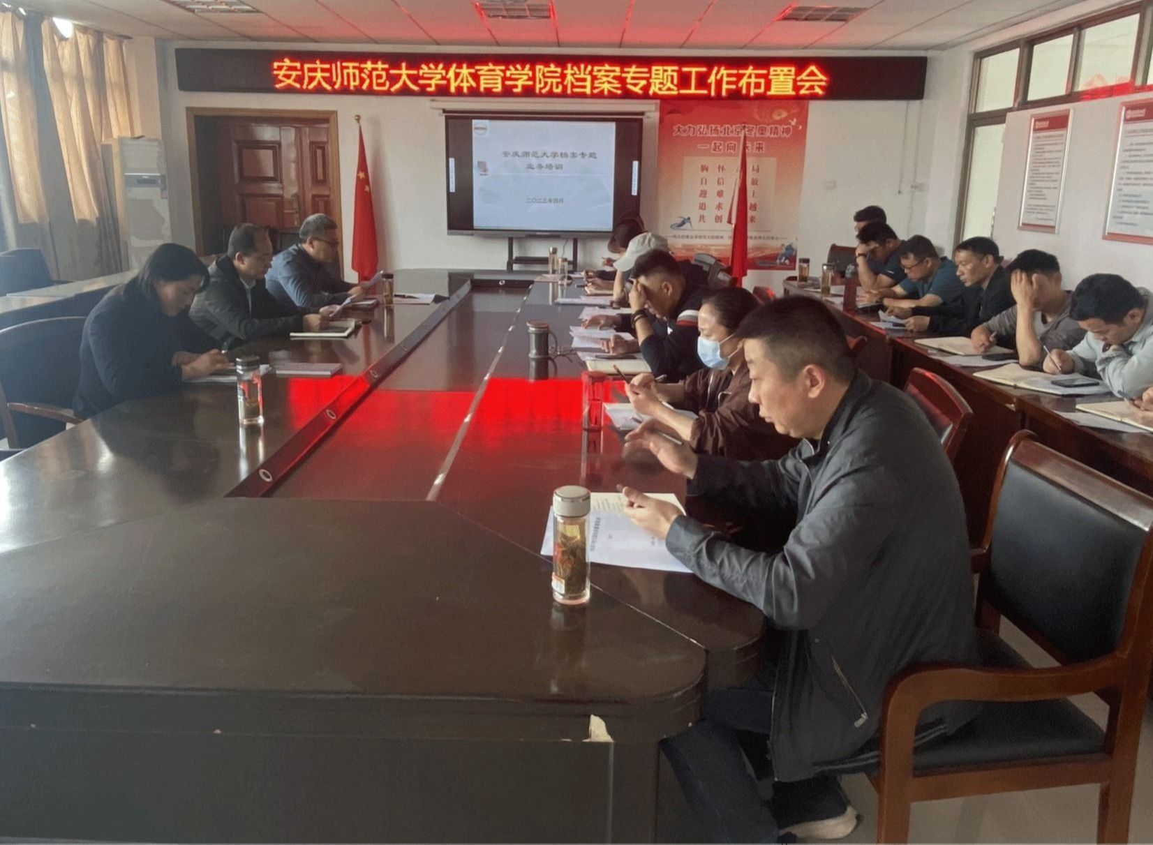 在体育馆三楼会议室召开档案工作专题布置会。学院党委副书记王玮,副院长林秋菊、王晓东出席会议,各支部书记、各专业负责人、各教研室主任,全体专兼职辅导员和行政人员参加会议。会议由林秋菊主持。