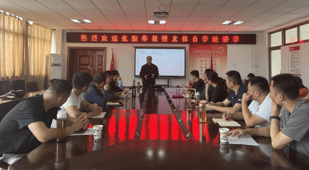 教授、安徽省学校体育领头人张振华作了题为《如何开展有组织的体育科学研究》的学术讲座。讲座由副院长王晓东教授主持,学院部分老师和研究生聆听了报告。
