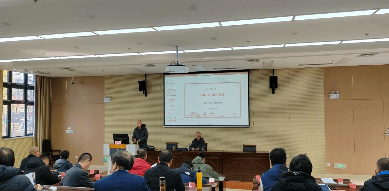 王飞博士为安庆市中小学体育教师与教练员开展了新修体育法的普法讲座。
