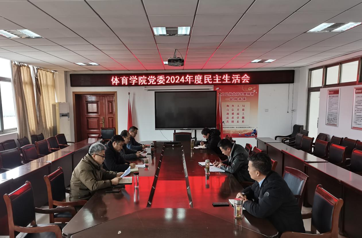 在体育馆三楼会议室召开党委班子2024年度民主生活会。会议由学院党委书记王玮主持,学院全体党委班子成员参加会议,党委秘书、组织员列席会议。