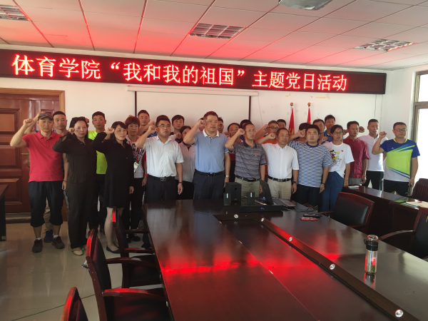 在体育馆会议室开展“我和我的祖国”主题党日活动。学院党政领导和全院教师党员参与本次活动。