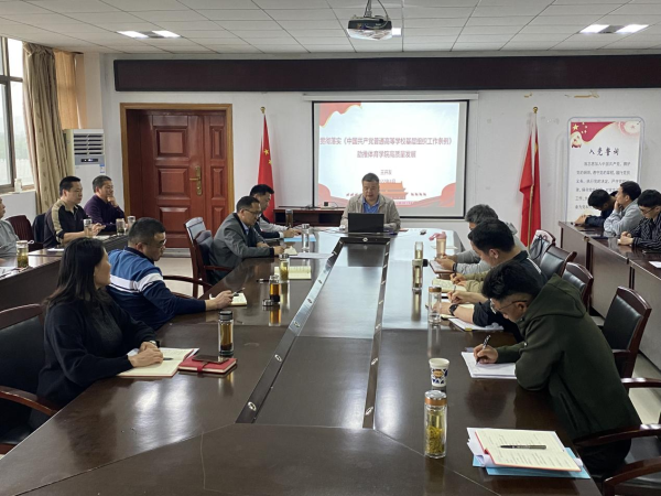 4月13日下午,学院党委书记王开友在体育馆会议室为全体教师党员和部分学生党员代表上了一堂题为“贯彻落实《中国共产党普通高等学校基层组织工作条例》——助推香蕉视频