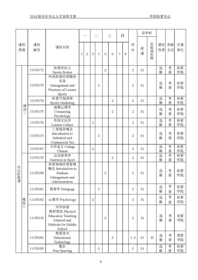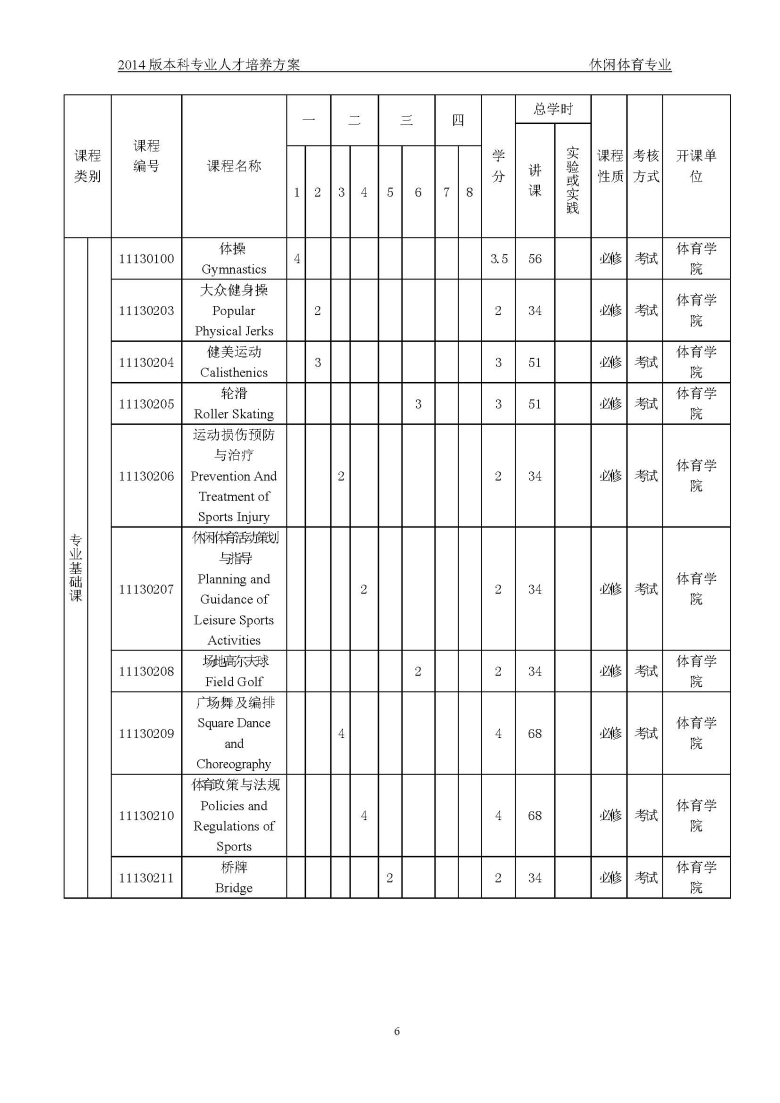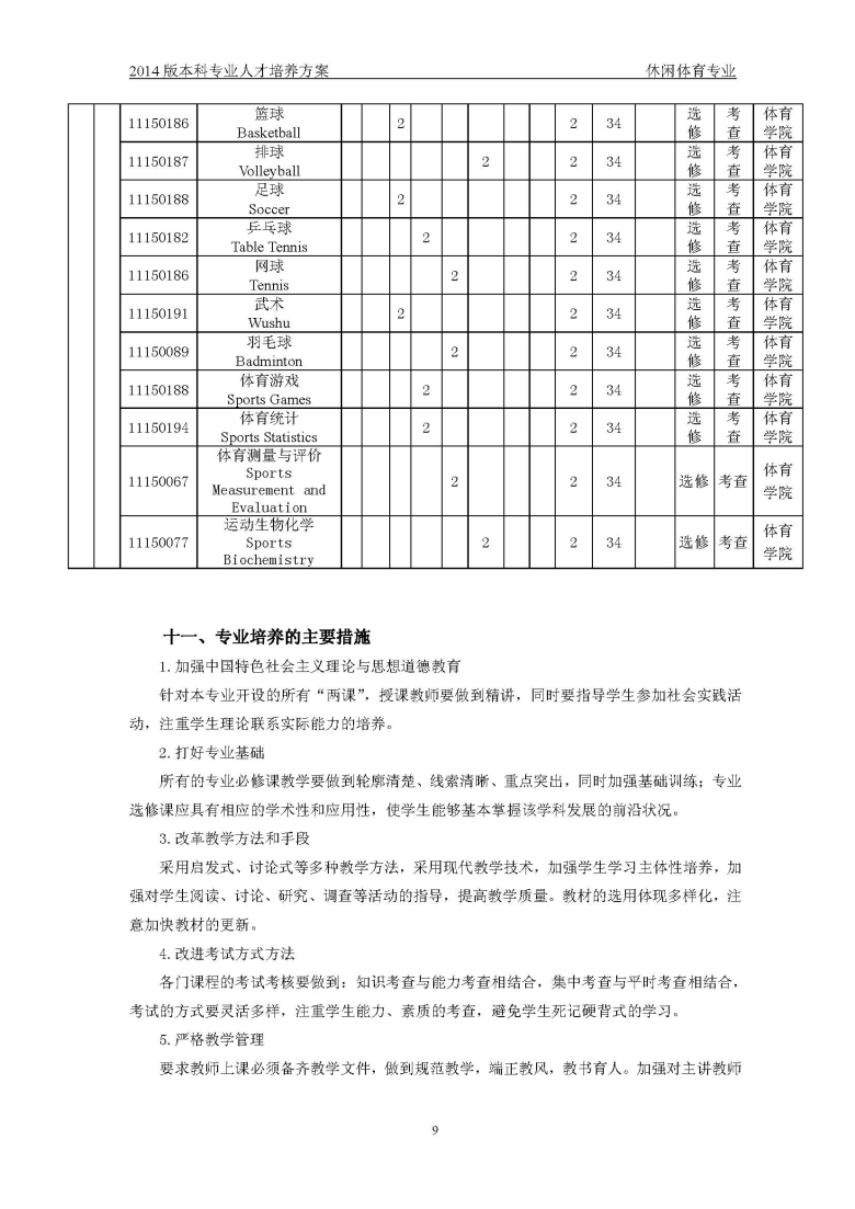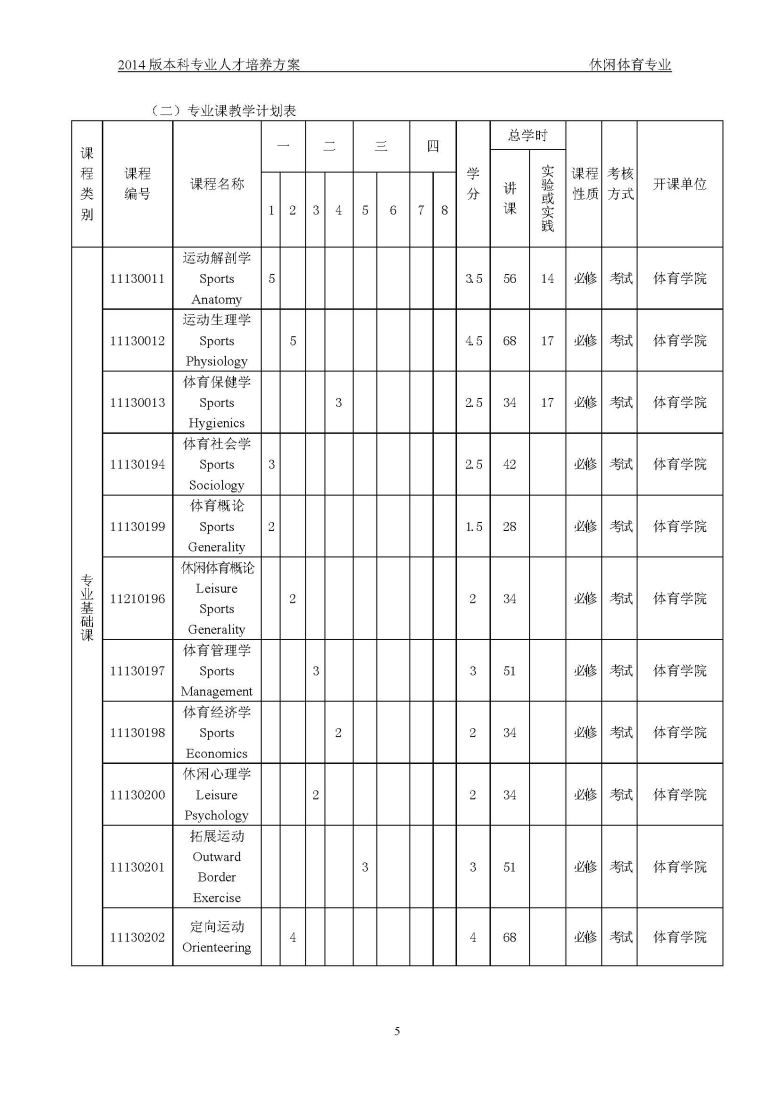 休闲体育培养方案