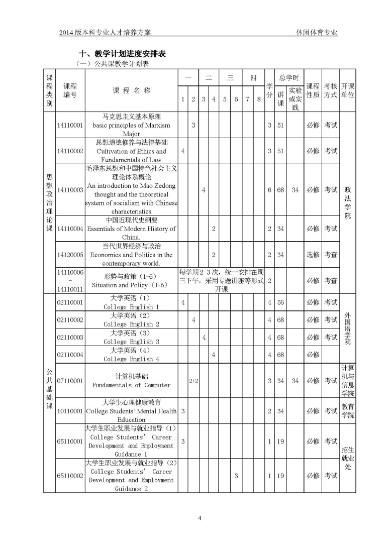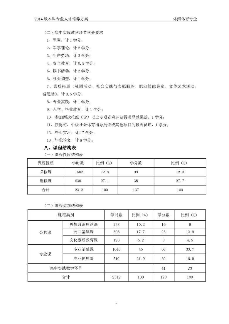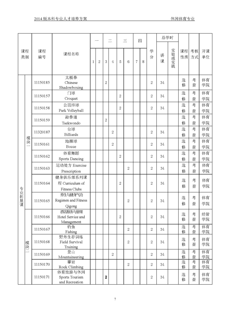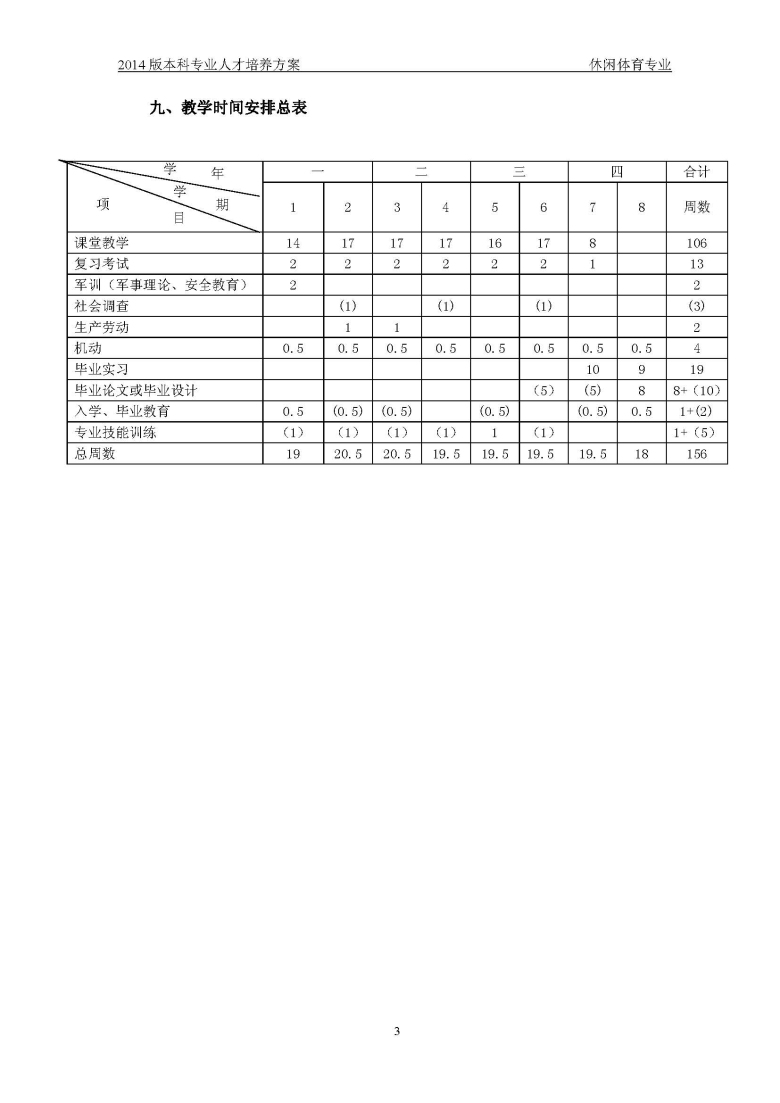 休闲体育培养方案