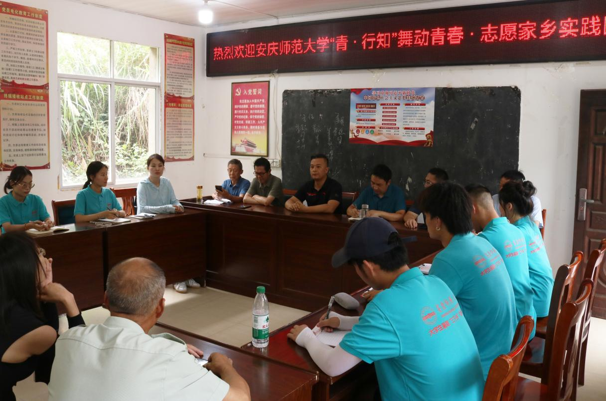 ‘青·行知’舞动青春、志愿家乡实践团来到西冲村,希望你们在这里可以开展好每天的活动,收获宝贵的经验”,在入村见面会上,西冲村驻村第一书记张军这样说道。实践团指导教师方芳介绍了队伍的人员构成、任务分工和具体活动内容,并对过去十年安庆师大学子在此开展“三下乡”实践所取得的成就进行了总结。随后,村委会领导就团队生活需求和活动开展形式与指导老师和队员进行了讨论和交流。