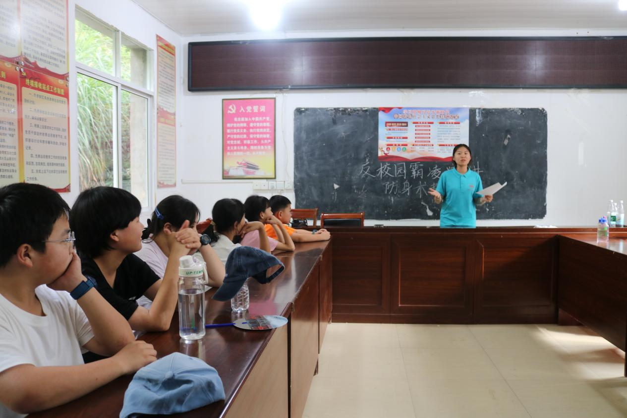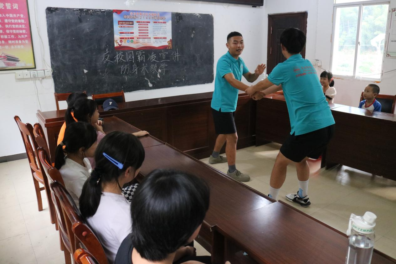 “青·行知”舞动青春、志愿家乡实践团深入安庆市太湖县天华镇西冲村,为村里的孩子们开展反校园霸凌宣讲,并进行防身术教学。