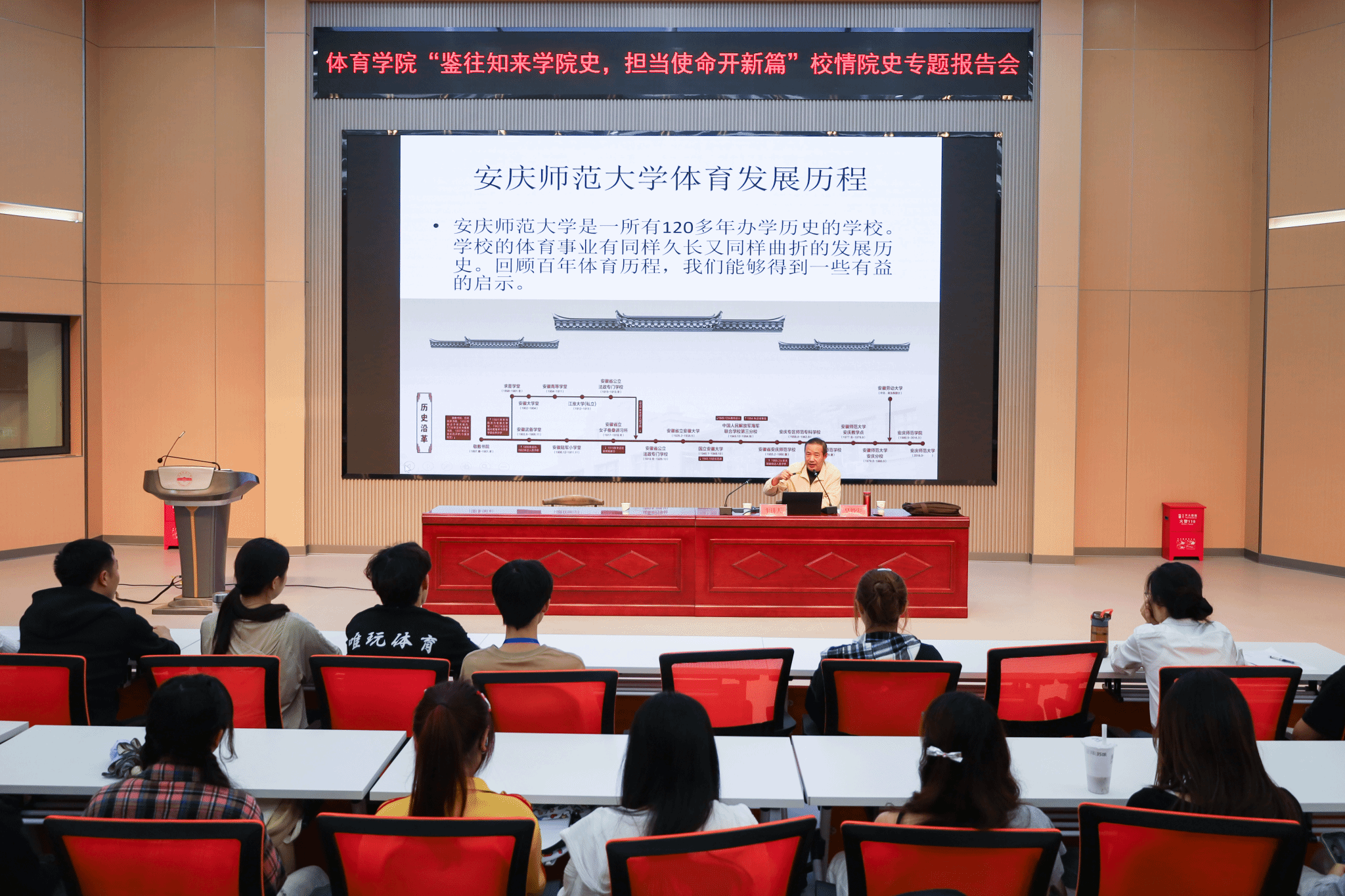 在图书馆西报告厅举办“鉴往知来学院史,担当使命开新篇”校情院史专题报告会,200余名师生于校情院史脉络梳理中感悟体育情结,于书香氛围中搭建历史与现实的对话桥梁。