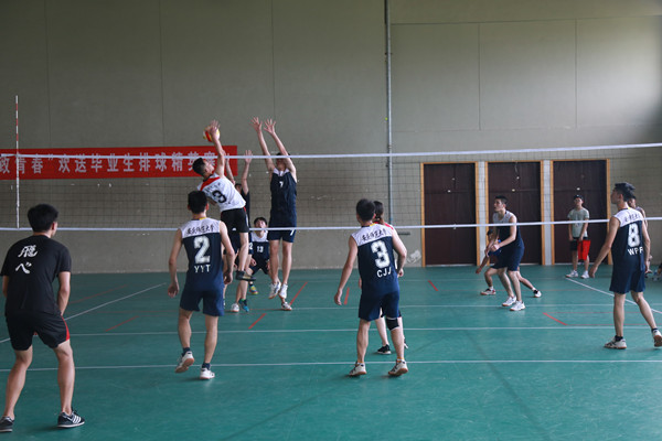在体育馆举办“致青春”欢送毕业生排球精英赛,共有30余名大四毕业班的排球爱好者参与。