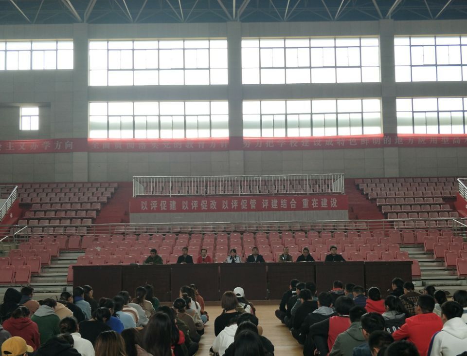 在体育馆篮球馆召开了第38届田径运动会学生动员暨安全纪律教育大会。学院院长章翔、副院长林秋菊、党委副书记高栋梁和各辅导员老师出席会议,学院大一至大三年级全体在校生参加了会议,会议由院党委副书记高栋梁主持。