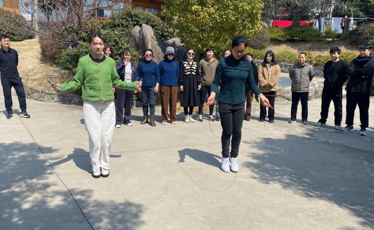 活动期间,学院分工会还在空地上举行了集体拔河、女教工单摇跳绳和双人跳绳等趣味体育比赛。比赛现场气氛热烈,呐喊助威声不断,引来不少游客驻足观看。